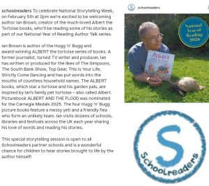 The online event on Thursday February 5 is open to all 1700 primary schools helped by Schoolreaders.