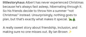 We’re delighted to say our Christmas book ALBERT AND CHRISTMAS seems to have sold very well.