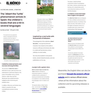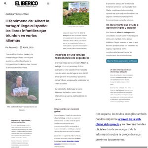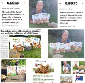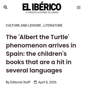 Then, even more headlines .. this time about our first book in Spanish .. as the first Spanish newspaper picked up on the arrival of ALBERT UPSIDE DOWN in Espanol as ALBERT al Reves. We have offered the translation here as well… Thanks to all at El Iberico newspaper.