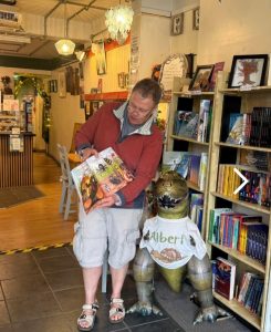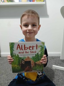 As you know too well, we love to receive pictures from YOU of poses with our books and other goodies. So, we were delighted to receive this of a reader from Scotland who discovered ALBERT AND THE SHED in a local library. Please do support libraries – and do please keep sharing those pictures.