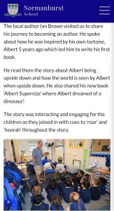 We were pleased to catch up with this school report – rather belatedly – on our visit to Normanhurst School in North Chingford for an ALBERT & Hugg ‘n’ Bugg picturebook storytime. Thanks to everyone involved.